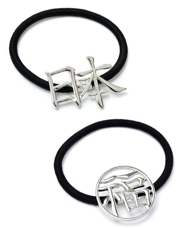 - 20160526UP,アクセサリー,原宿,ファッション,パーツ,KANJI,漢字,文字,字体,日本語,メタル,メタリック,シルバー,ゴールド,モチーフ,ユニーク,個性的,原宿系,ヘアゴム,ヘアアクセサリー,ヘアアクセ,日本,福,愛,風,我,龍,